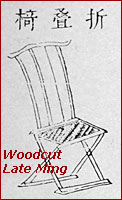 交椅风行于宋代,有圆后背与直后背式两种,在该时期的文献画册中皆有范例可考。中国惯用的名称有「交椅」及「折叠椅」两种。